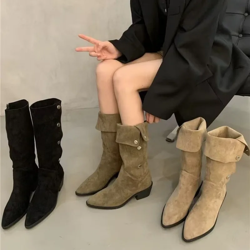 Женские ковбойские ботинки во французском стиле, осенние ботинки в западном стиле, высокие ботинки, оптовая продажа
