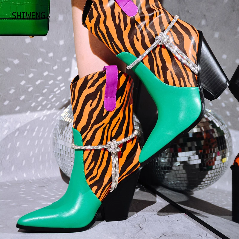Женские ковбойские ботинки до середины икры, удобные ковбойские ботильоны составного кроя с острым носком и вышивкой, 44 цвета, Осень-зима 2023