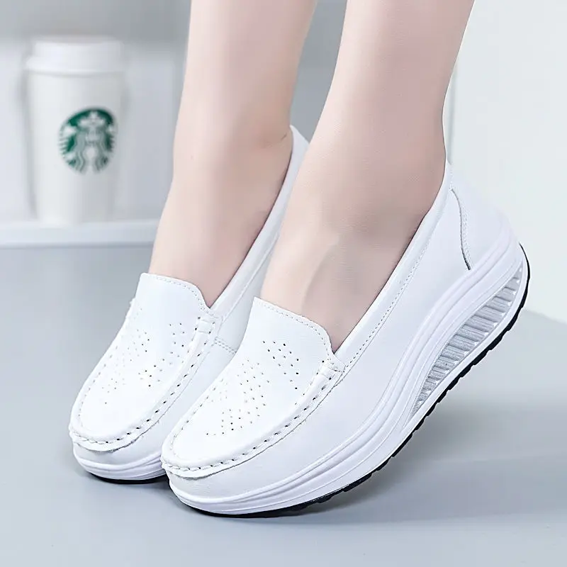 Женские кожаные кроссовки из коровьей кожи, двухслойная дышащая модная обувь на плоской толстой подошве, черные для медсестер