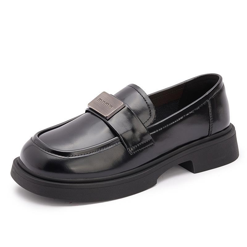 Женские кожаные лоферы на платформе 2025 новая весна универсальные закрывающие ногу женские туфли одинарные черные в британском стиле маленькие кожаные туфли женские 35