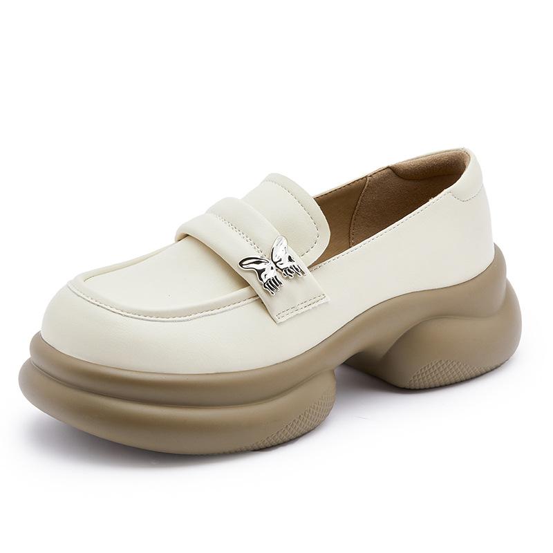 Женские кожаные лоферы на платформе 2025 осень новая универсальная обувь на одной педали маленькие кожаные туфли бант черный одинарная обувь 40