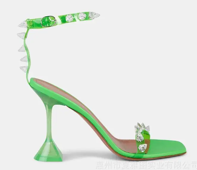 Женские кожаные сандалии с ремешком на щиколотке, украшенные ПВХ стразами