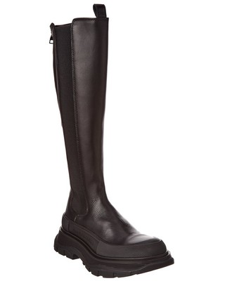 Женские кожаные сапоги до колена Alexander Mcqueen Tread Slick, Черный, NA