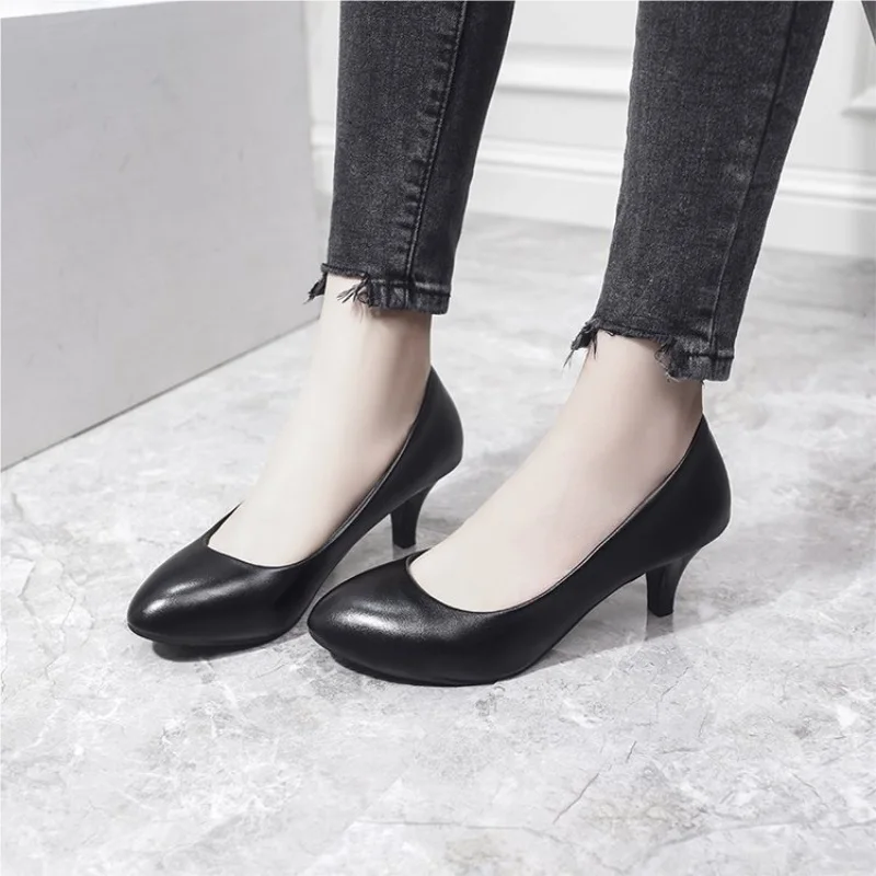 Женские кожаные туфли на низком каблуке, черные туфли с острым носком на толстом каблуке, новинка весны 2022