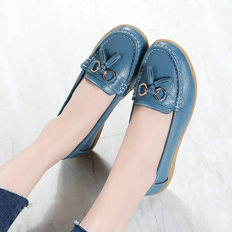 Женские кожаные туфли на танкетке, мягкая подошва, модные однотонные кроссовки