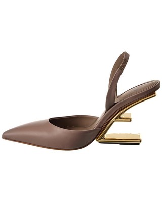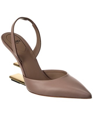 Женские кожаные туфли Fendi First с открытой пяткой, Бежевый, NA