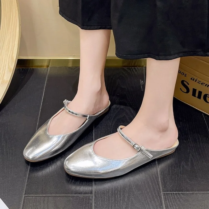 Женские кожаные шлепанцы, низкий каблук, Нескользящие, однотонные, Современная обувь, весна-лето