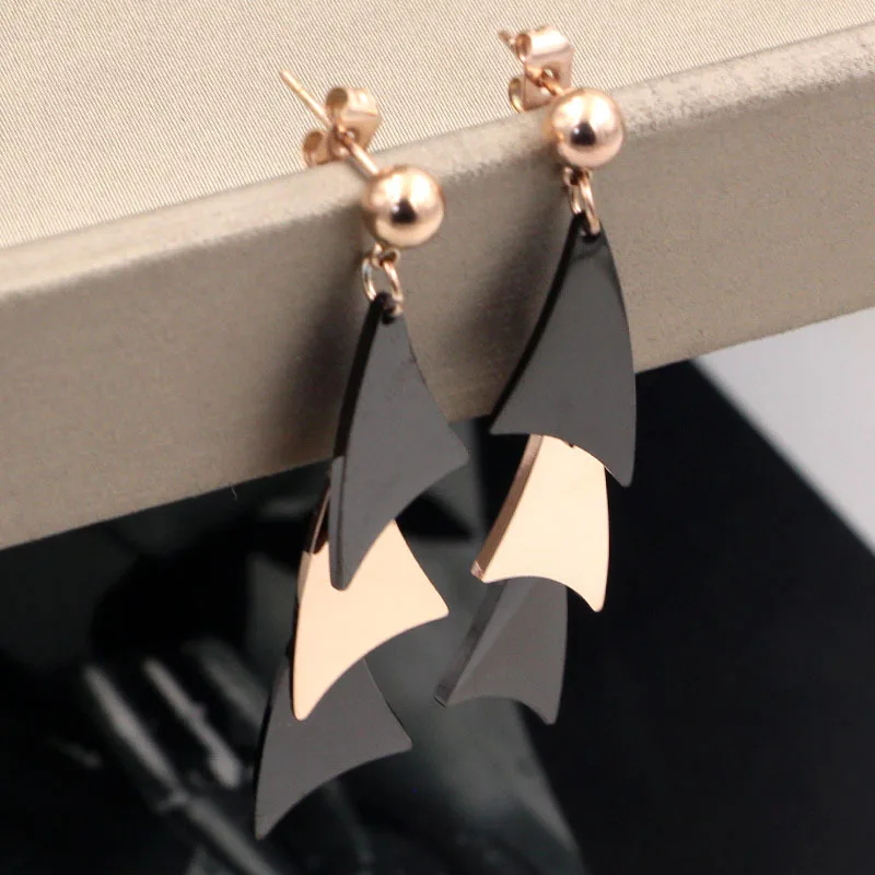 Fashion Stainless Steel Geometric Irregular Drop Earring Black Rose Gold Color Women Female Party Wedding Gift