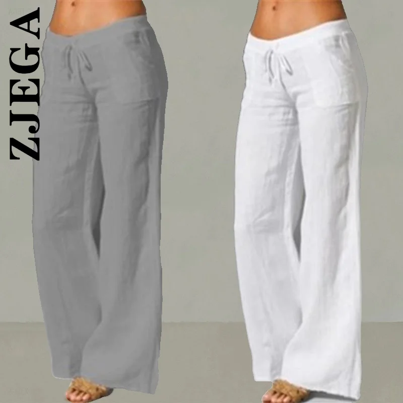 Zjega Women Fashion Trousers Pants Long Leg Pant Baggy Cotton Linen Pants Elegant Pants Soft Slim Female Women's Pants