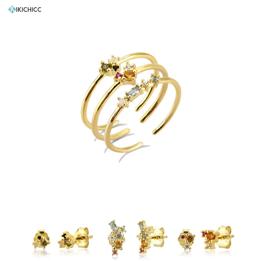 Женские кольца с 3 цирконами Kikichicc, красочные кольца из стерлингового серебра 925 пробы с изменяемым размером, вечерние ювелирные украшения в европейском стиле, 2020