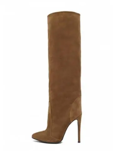 Женские коричневые/красные/черные/серые высокие сапоги с острым носком на высоком каблуке Модные сапоги выше колена на тонком каблуке женс...