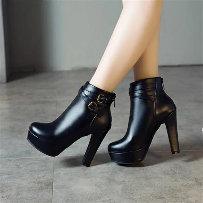 Женские короткие ботинки, обувь на высоком каблуке, ботинки с заклепками, зимние кожаные однотонные ботинки на шнуровке с круглым носком, же...