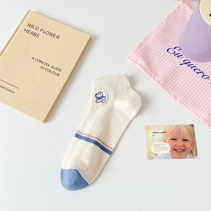 Женские короткие носки для весны и лета, ультратонкая сетка, перфорированные, дышащие и милые мультяшные короткие хлопковые носки, носки-лодочки 1 pair
