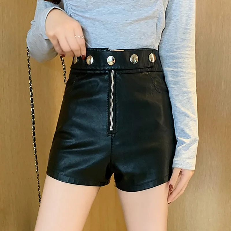 Женские короткие шорты из искусственной кожи, черные, на осень-зиму, S-2xl, 2019