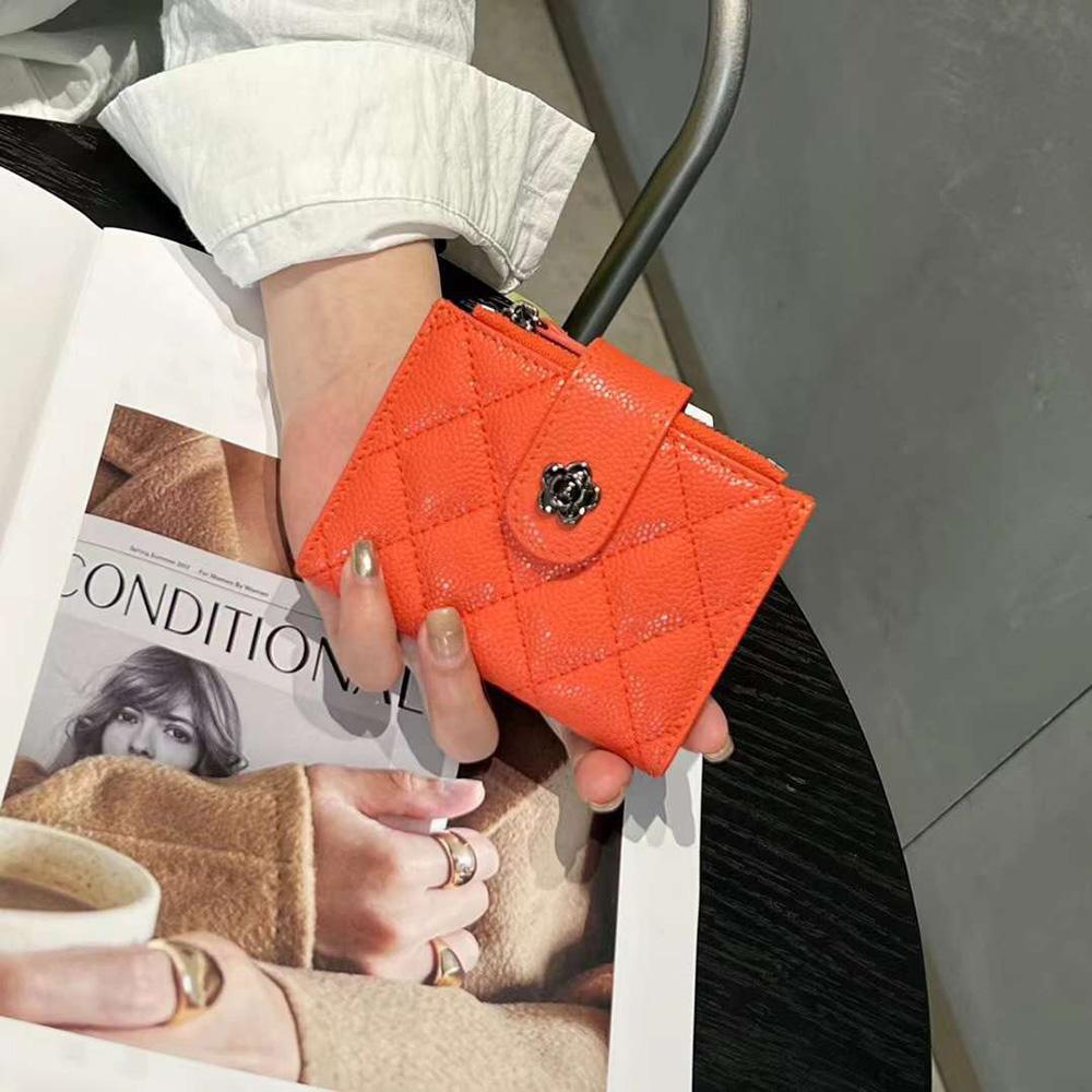Женские кошельки из натуральной кожи икры, первый слой коровьей кожи, короткий кошелек, брендовый стиль, кошелек для монет, камелия, молния, застежка, бумажник без логотипа оранжевый