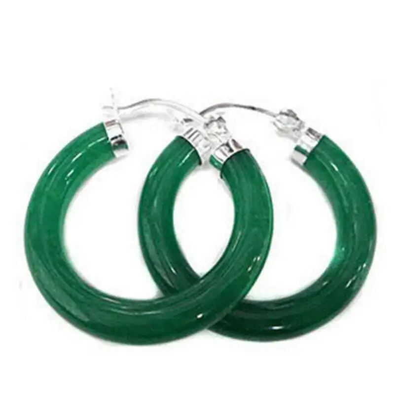 Женские красивые круглые зеленые серьги из натурального нефрита