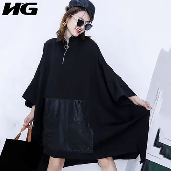 HG Patchwork Letter Pocket Dress Women 2020 Autumn Casual Fashion Style Temperament All Match Stand Collar Loose Dress ZP3745