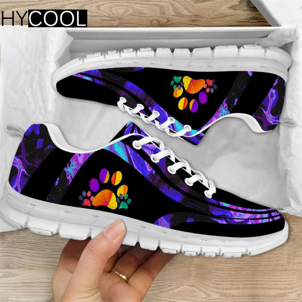 Женские кроссовки для бега HYCOOL, удобные кроссовки из сетчатого материала с принтом собачьей лапы, женские кроссовки для фитнеса на шнуровке