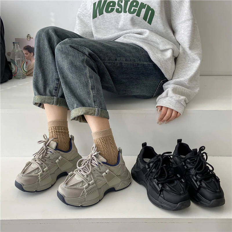Женские кроссовки на массивной платформе, серые сетчатые кроссовки на платформе, со шнуровкой, повседневная обувь для отца, новинка 2023