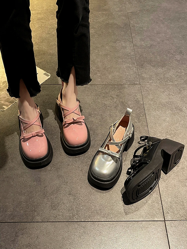 Женские кроссовки на платформе, повседневные кожаные туфли-оксфорды на толстой подошве, с бантом и круглым носком, 2023