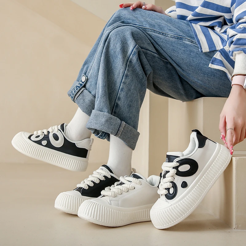 Женские кроссовки на плоской подошве, черные повседневные кроссовки на толстой подошве, на шнуровке, Вулканизированная подошва, для тенниса, для осени, 2023