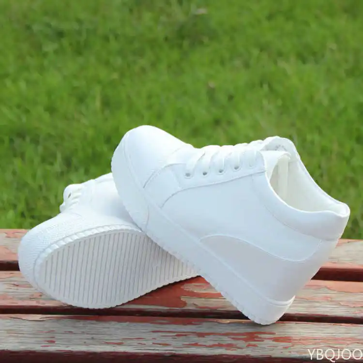 Женские кроссовки на скрытой танкетке, повседневная обувь на высокой платформе, белые туфли на танкетке