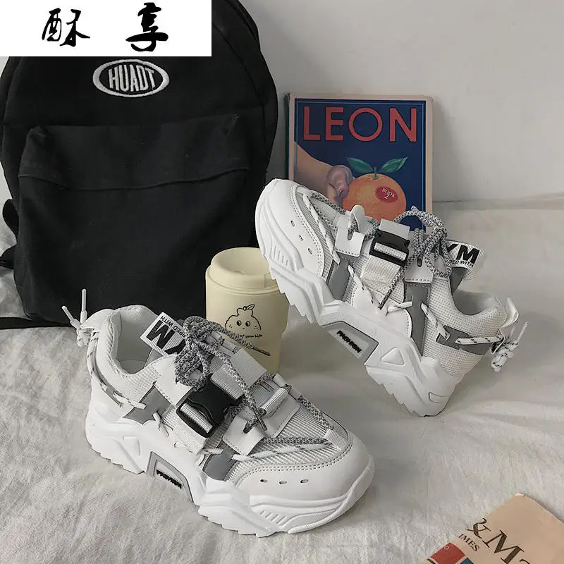 Женские кроссовки на толстой подошве, модные Папины кроссовки на шнуровке, удобная обувь для отдыха, увеличенная Вулканизированная подошва...