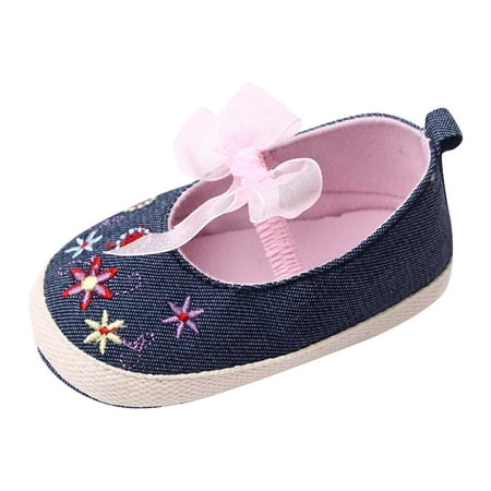 Tosmy Summer Children Walking Shoes Girls Sports Shoes Flat Bottom Non Slip Lightweight Slip On Comfortable Embroidery Flower Ribbon Shoes For Toddler