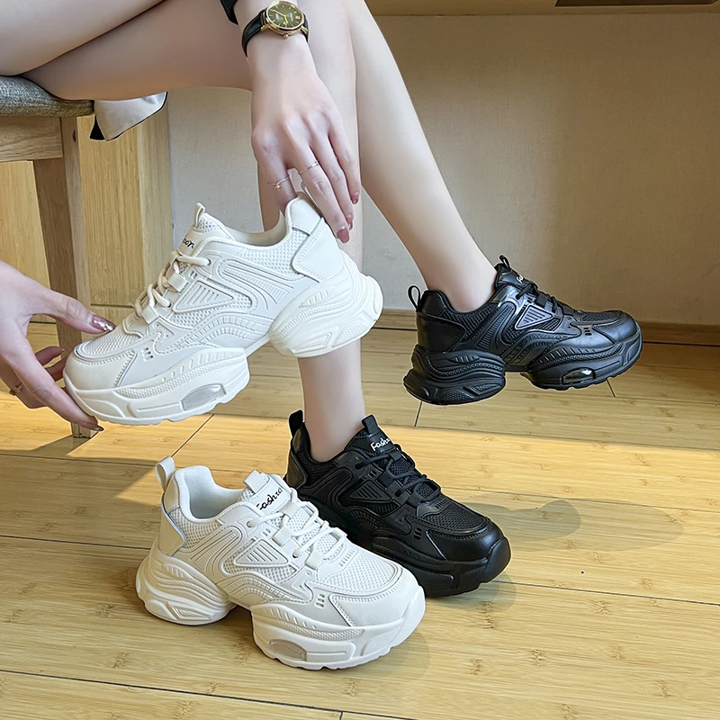 Женские кроссовки со шнуровкой, повседневные туфли на плоской платформе, в стиле ретро, 2023