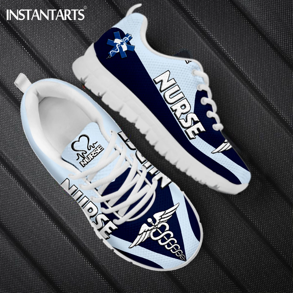 Женские кроссовки INSTANTARTS для медсестры, дышащая обувь на плоской подошве со шнуровкой, сетчатые кроссовки с орнаментом, Дамская обувь