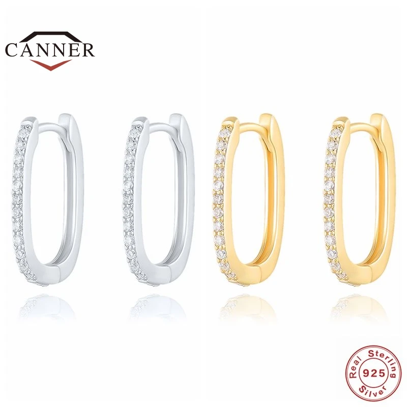 Женские круглые серьги-кольца CANNER, из стерлингового серебра 100% пробы с фианитами, серебро 925 пробы, 925