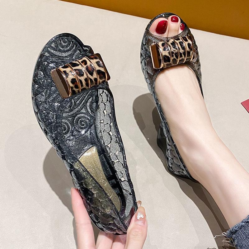 Женские крутые тапочки с кристаллами желе, летние модные пластиковые тапочки на танкетке с открытым ртом «рыбий рот», модные пластиковые тапочки с высокой посадкой для внешнего ношения 38 чёрный