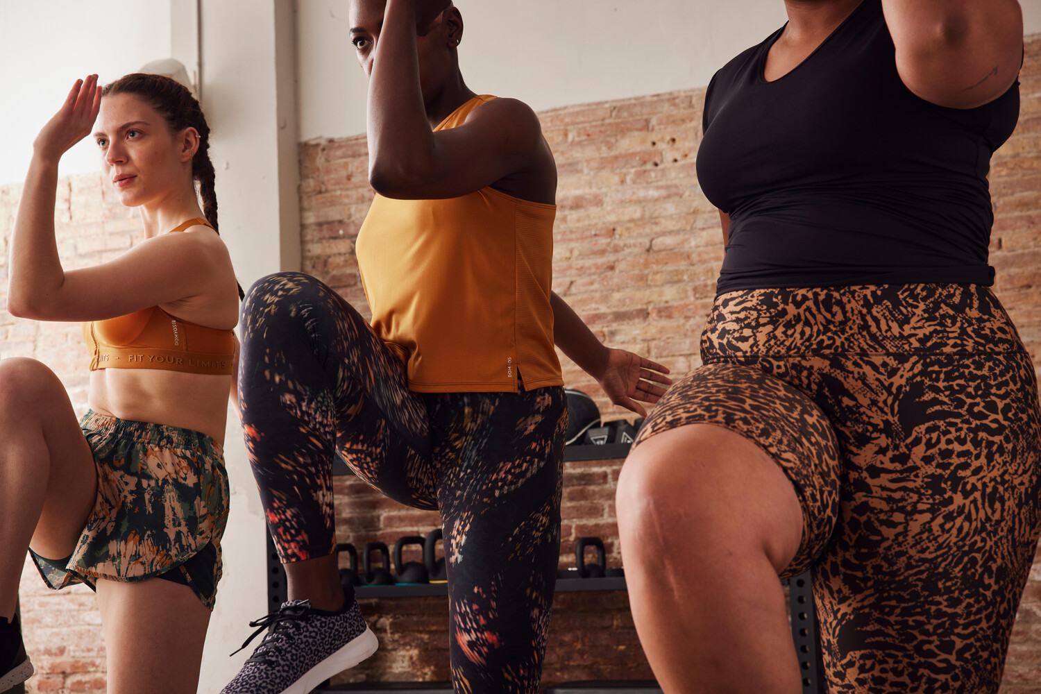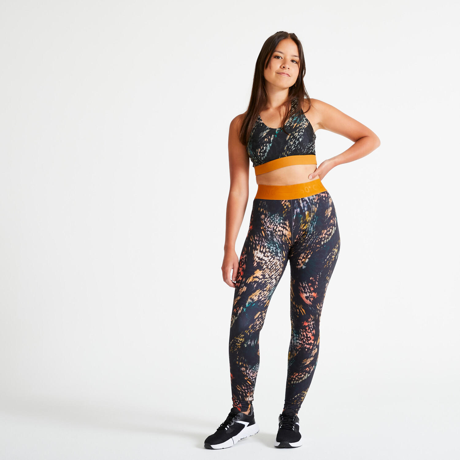 Женские леггинсы для фитнеса и кардио с высокой талией - принт Domyos
