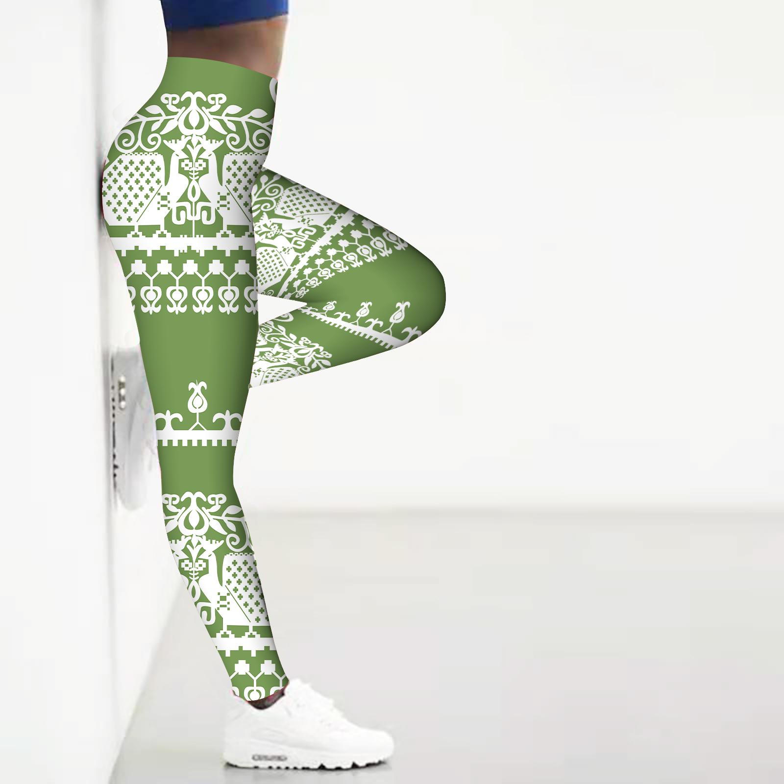 Женские леггинсы с ретро-принтом для занятий йогой, фитнесом, бегом, спортом, активными штанами XS зелёный