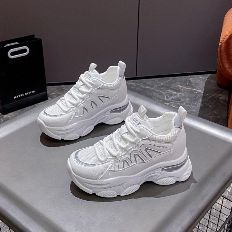 Женские летние кроссовки, новая сетчатая дышащая универсальная маленькая белая обувь, небольшая внутренняя высота, толстая подошва, папины кроссовки 40 белый