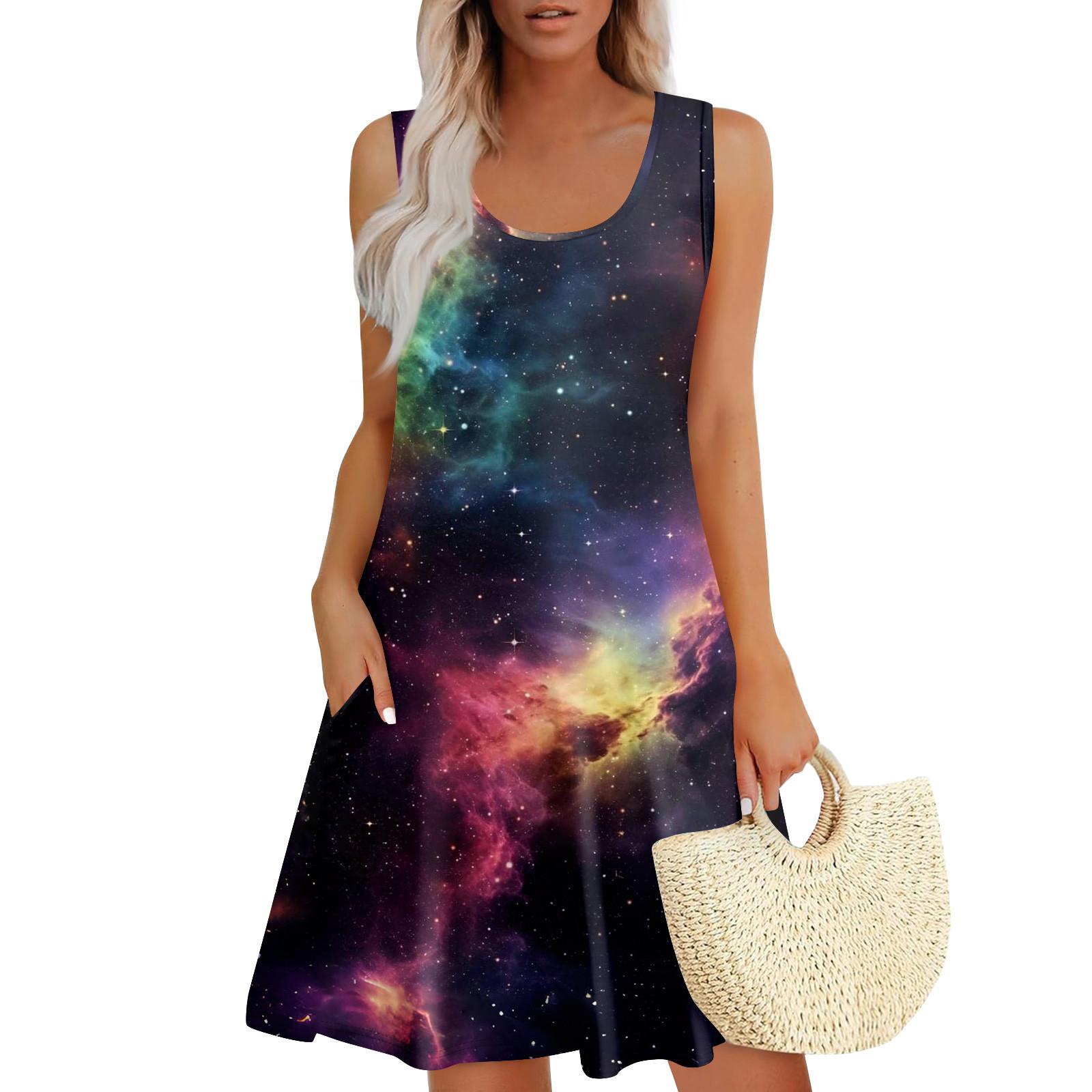 Женские летние платья Пасхальный принт Свободные сарафаны без рукавов с U-образным вырезом Платье с карманами M