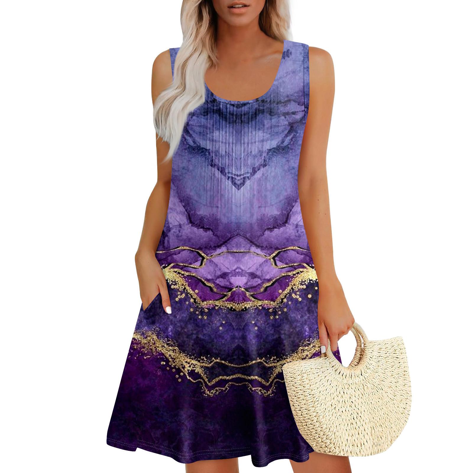 Женские летние платья Свободные сарафаны без рукавов Платье с карманами S фиолетовый