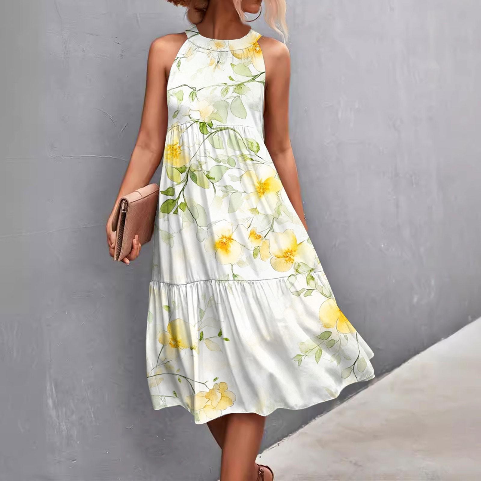 Женские летние платья без рукавов с принтом ко Дню святого Валентина, свободные, повседневные, с висячим вырезом, пляжные платья XL жёлтый