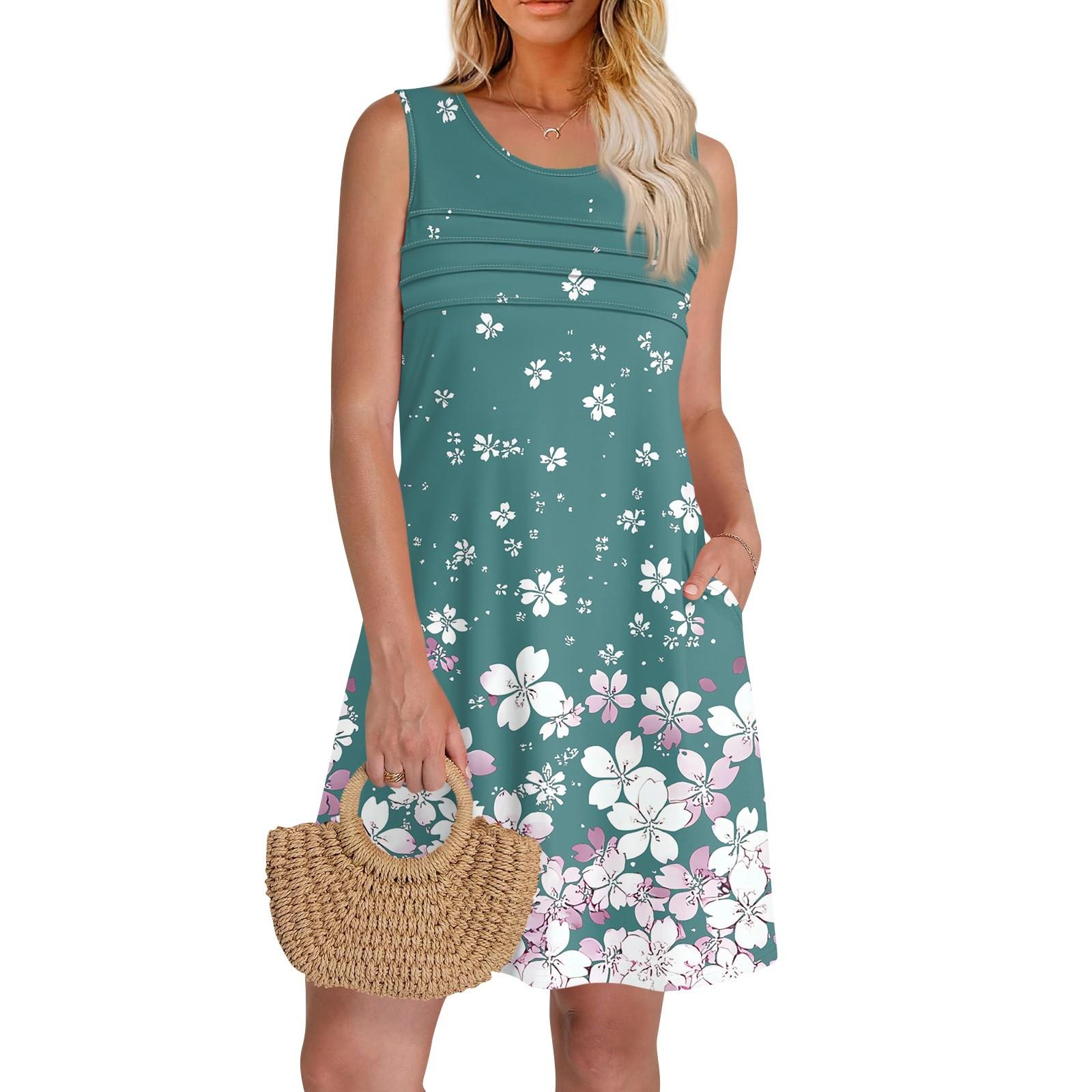 Женские летние платья с круглым вырезом, плиссировкой спереди, без рукавов, карманами, сарафаном, повседневным платьем XL