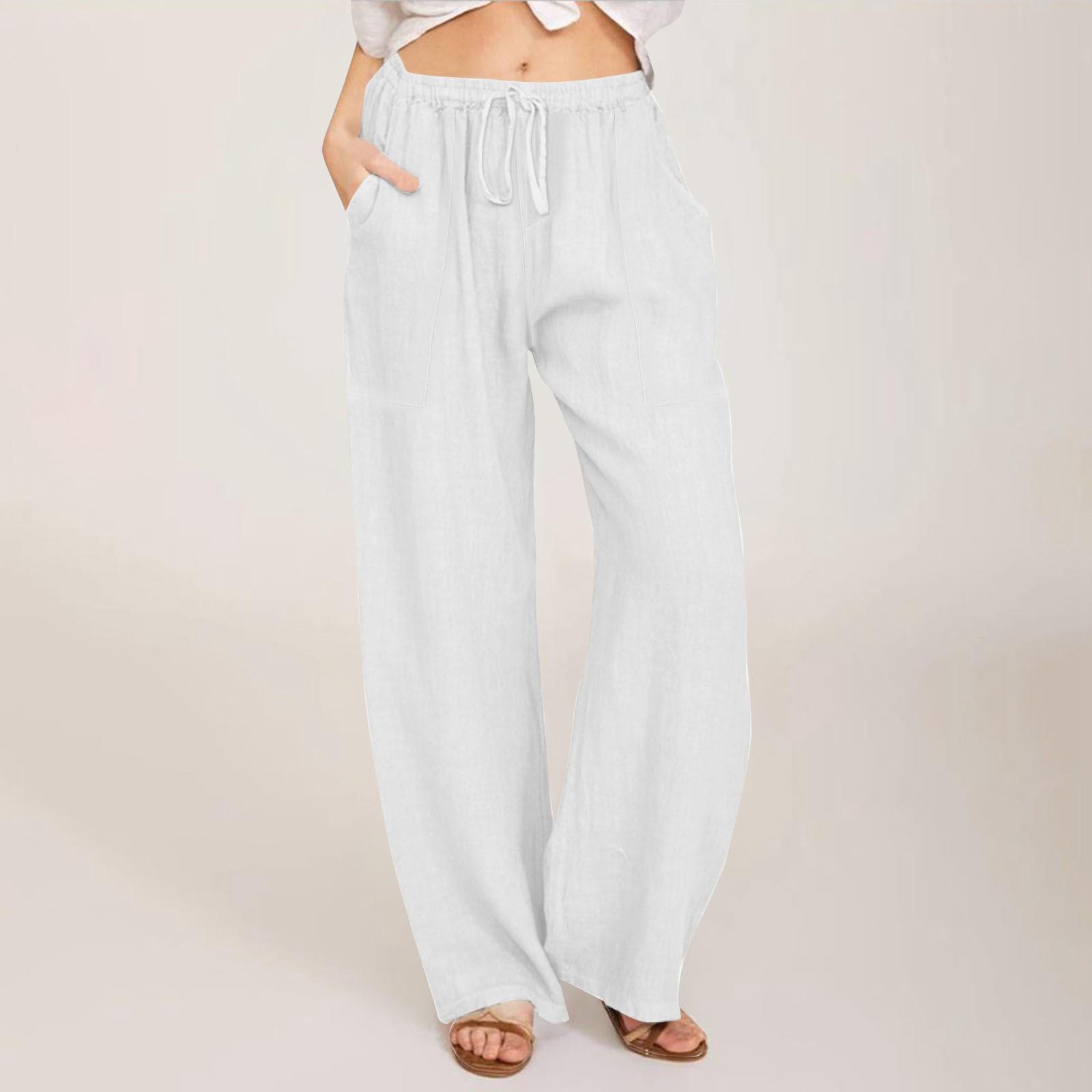 Женские летние свободные брюки из хлопка и льна с эластичным поясом и внешним карманом XL белый