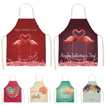 1Pcs Love Heart Valentine's Day Pattern Cleaning Home Cooking Kitchen Aprons Cook Wear Cotton Linen Adult Bibs 53*65cm WQL0207