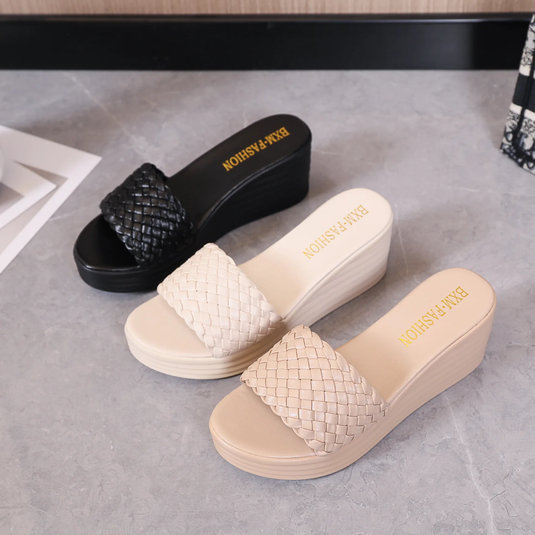 Женские летние шлепанцы с открытой пяткой, на толстой подошве