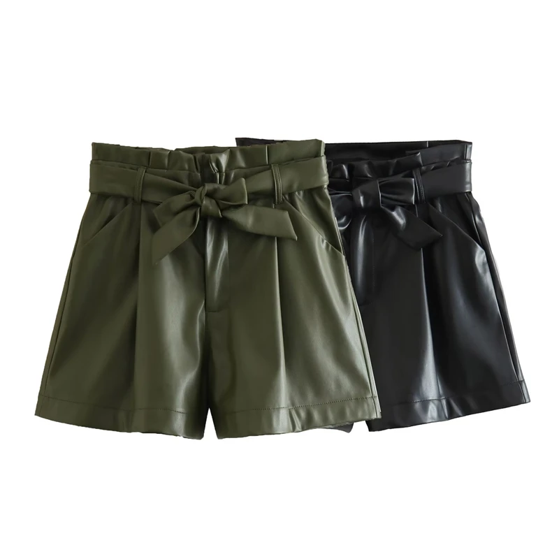 Женские летние шорты из искусственной кожи с завышенной талией и бантом