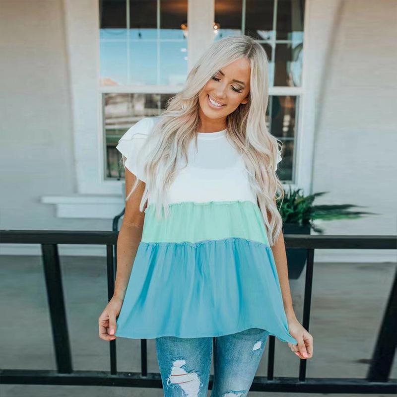 Женские лоскутные футболки, летние свободные синие футболки с короткими рукавами и градиентным принтом Tie Dye, топы 3XL синий