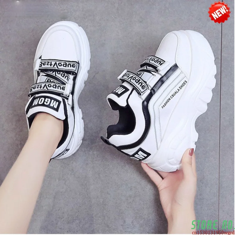 Женские массивные кроссовки 2020, модные кроссовки на платформе, женская брендовая повседневная обувь на танкетке для женщин, кожаные спорти...