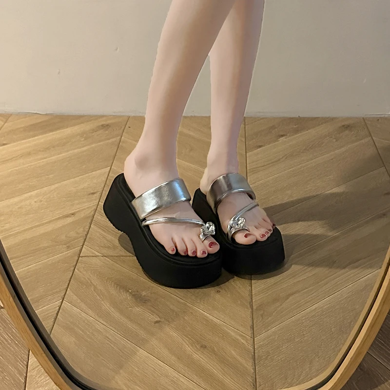 Женские массивные шлепанцы на платформе, элегантные шлепанцы на плоской подошве, пляжные сандалии-гладиаторы с клипсой, лето 2024