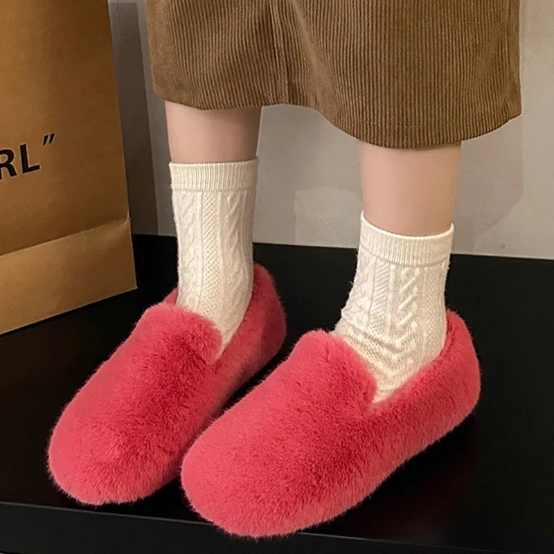 Женские меховые лоферы на плоской подошве, хлопковые ботинки, удобная обувь для женщин, зима 2024, новые теплые удобные женские ботинки, женские плюшевые ботинки для женщин