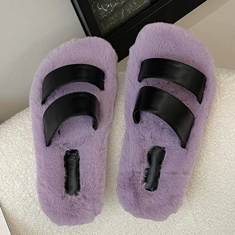 Женские меховые сандалии на плоской подошве, повседневные меховые шлепанцы для улицы и дома, Осень-зима 2022