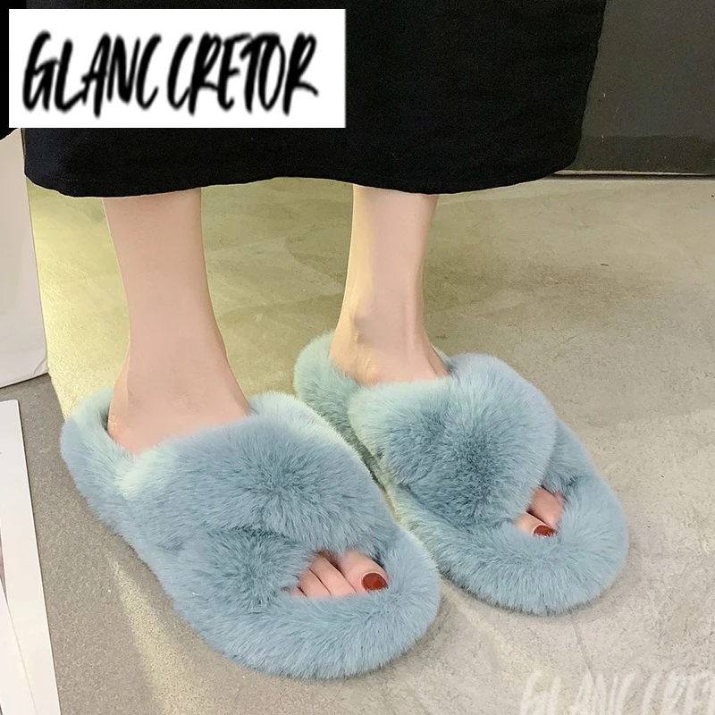 Женские меховые шлепанцы, черные теплые домашние тапочки на плоской подошве, полностью закрытые, из искусственного меха, большие размеры, з...