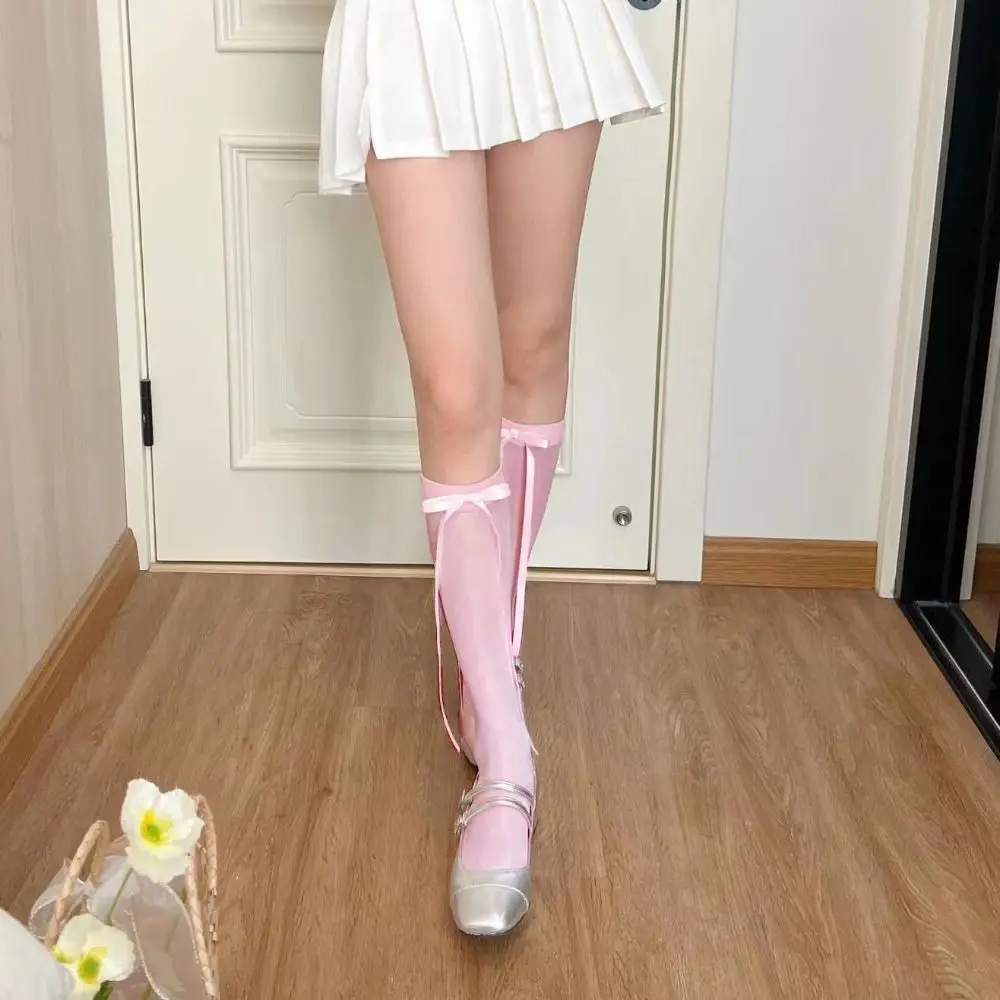 Женские милые шёлковые чулки с лентами в Корейском стиле, дышащие тонкие носки до щиколотки в Стиле Лолита JK Balletcore Y2K